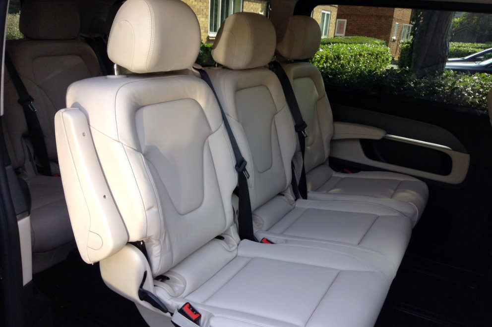 Extra Long wheel base model with twin automatic sliding doors, six leather individual reclining seats in the passenger cabin & single passenger seat upfront. The V Class is a first class people mover Automatic gearbox & front & rear air conditoning.